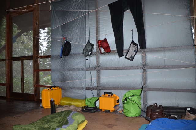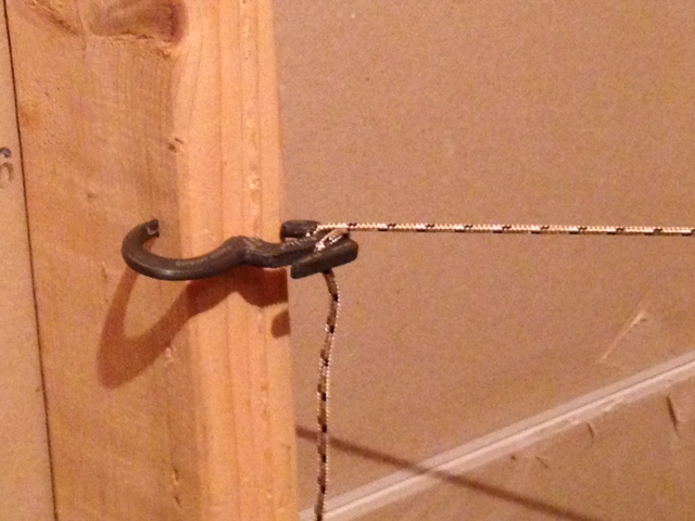Couldn't come up any way to improve on the hooks. Very happy with how they worked. I might make another set for the next trip so I can string a line overhead from the rafters (tried that just to see that it works), but a part of me says that's going to far--"What, you have to hang the light EXACTLY there!" :D