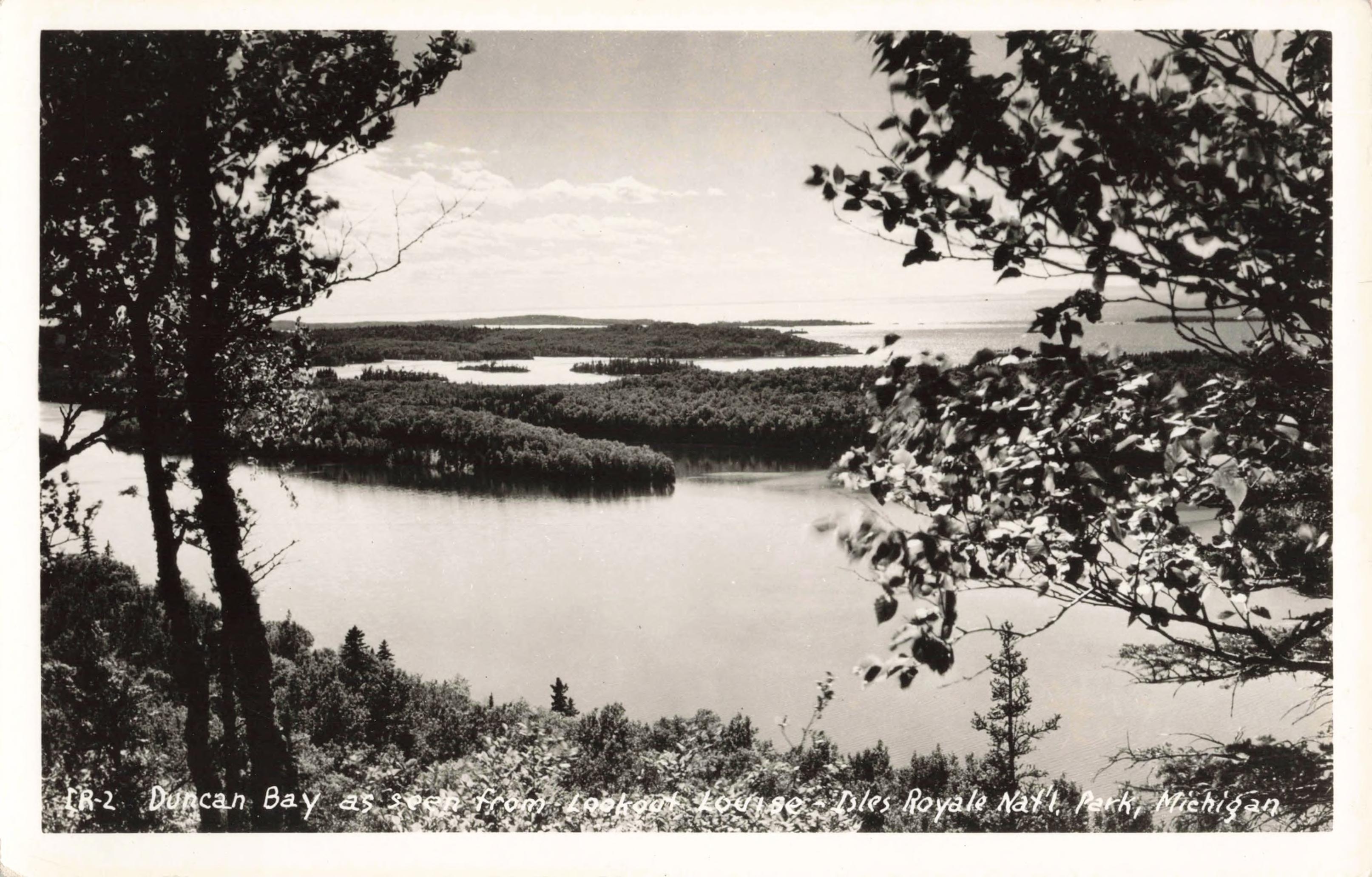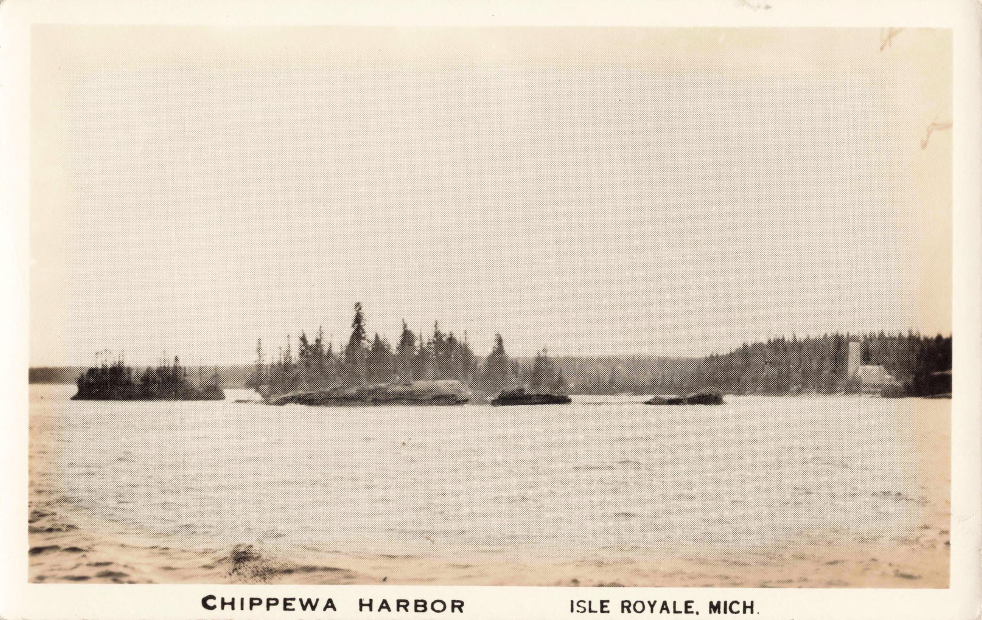 For the Chippewa Harbor postcard, I think it's actually a pic of Rock Harbor Lighthouse taken from the current Caribou Island campground, with the Middle Islands in the foreground.