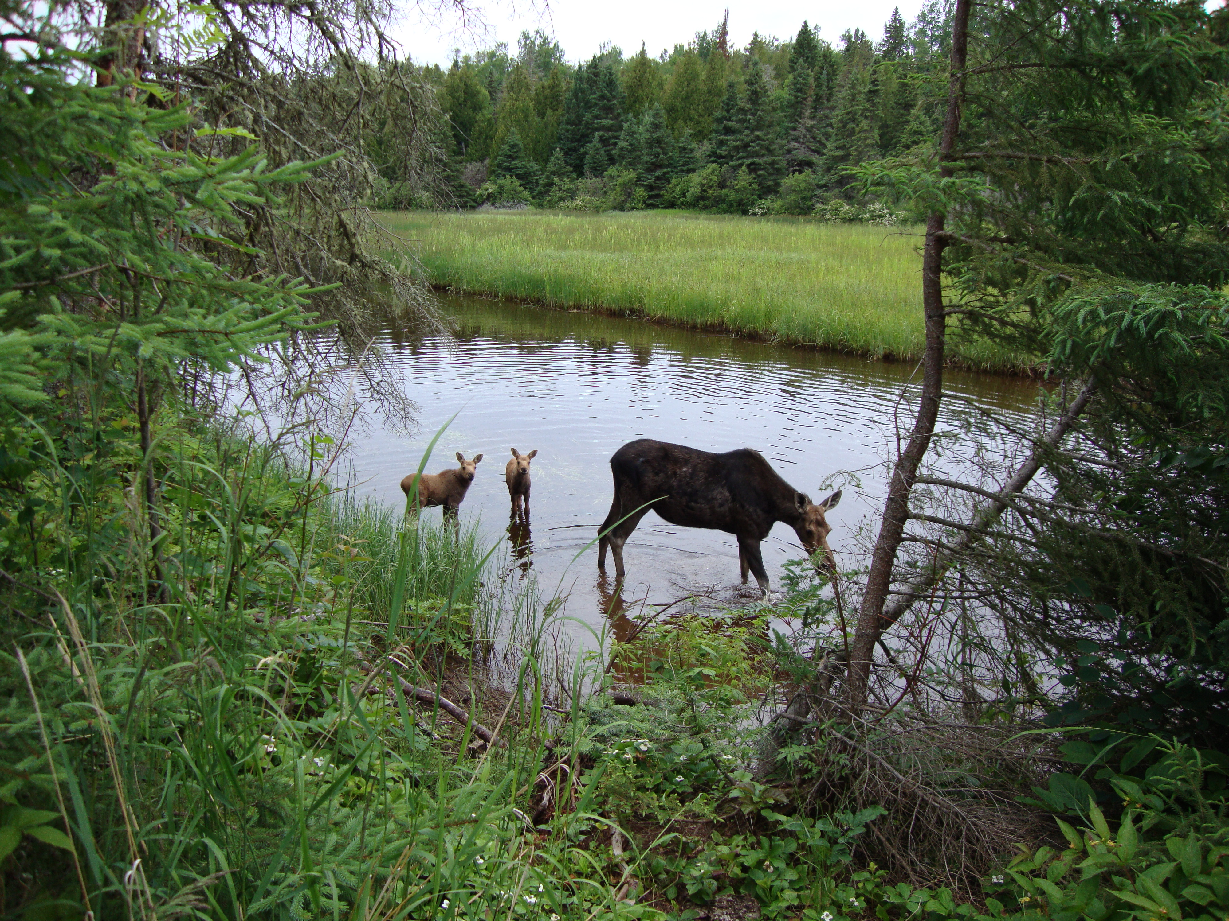 I am posting two pictures taken of the same area, but seven years apart. The one on top was taken June of 2016 and the one on the bottom was taken June of 2010. It is facing approximately NW. It is probably too easy but you have to like moose, especially when they wake you up while eating "salad."