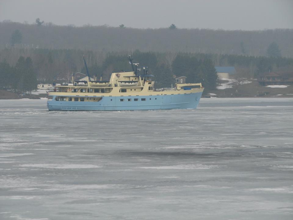 The Ranger failed to get to Windigo today, the ice was still too thick and very solid about 300 yds from the dock and rather than facing potential damage to the boat they were forced to return to Houghton. It will probably be a week before another attempt is made. Hopefully it will start to move around and break loose from land before that.