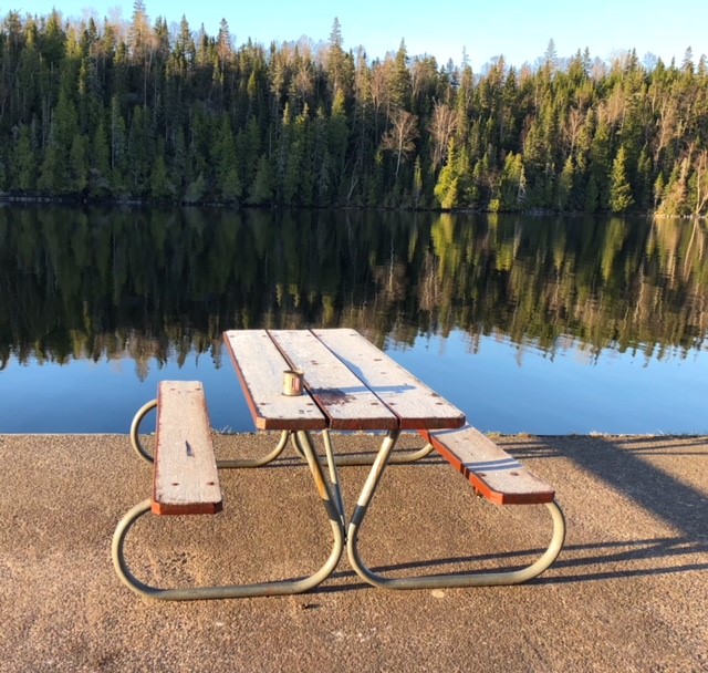 Day 4 Moskey to Chippewa: Knowing that Chippewa has only four shelters, we were up and hiking by 6:30. It looked like rain and we really did not want our last night to be spent soaking wet. We made great time and were surprised when Chippewa appeared before us. Along the way, we experienced about five rain drops, but that is all. Again, perfect hiking conditions. When we arrived, there were still two open shelters. We chose a shelter near the dock but lower than two others and well shielded from the still-strong, and cold, wind. Within thirty minutes, the skies opened up for about fifteen minutes. Fortunately, by then, we were firmly ensconced in our nice dry shelter!