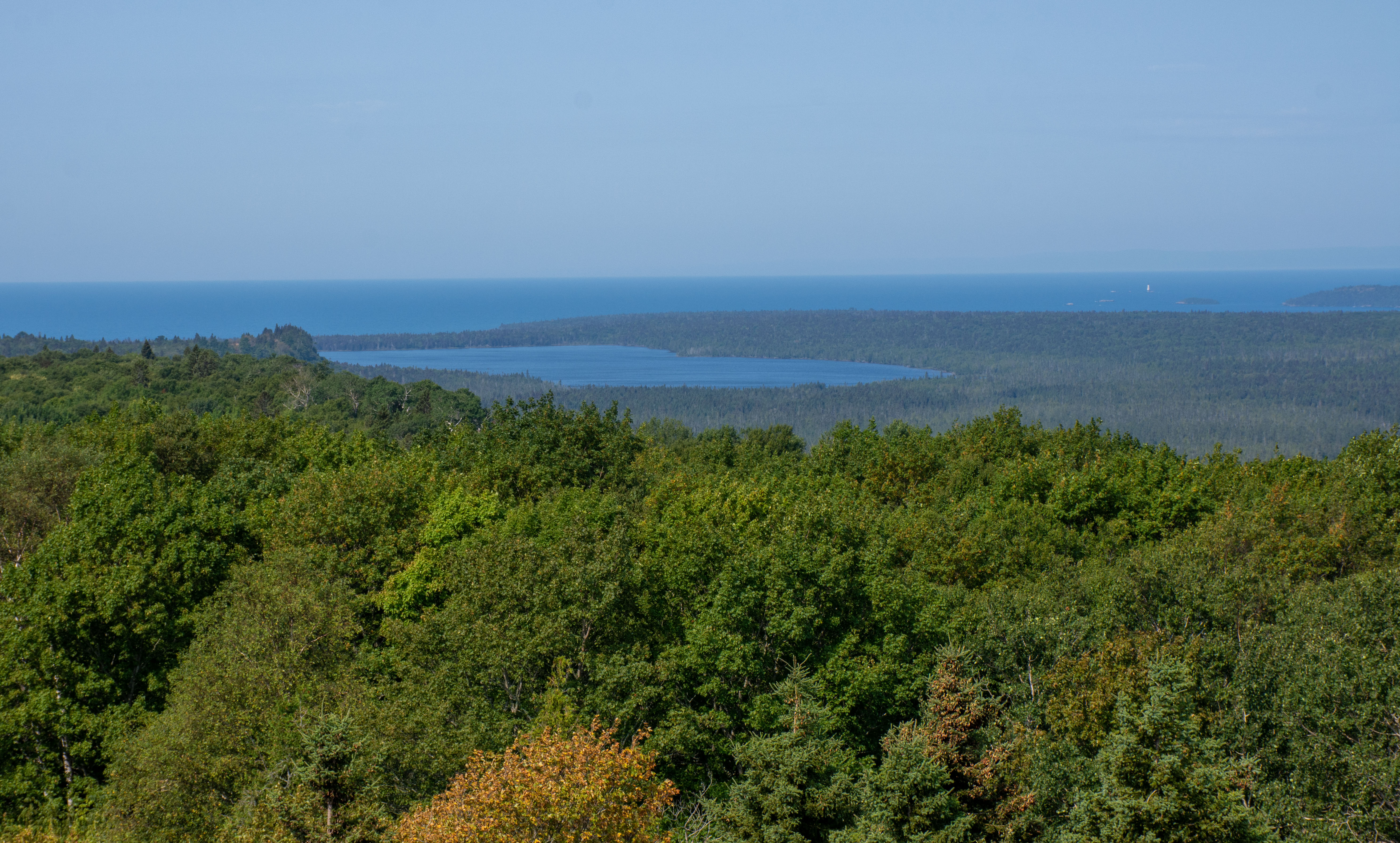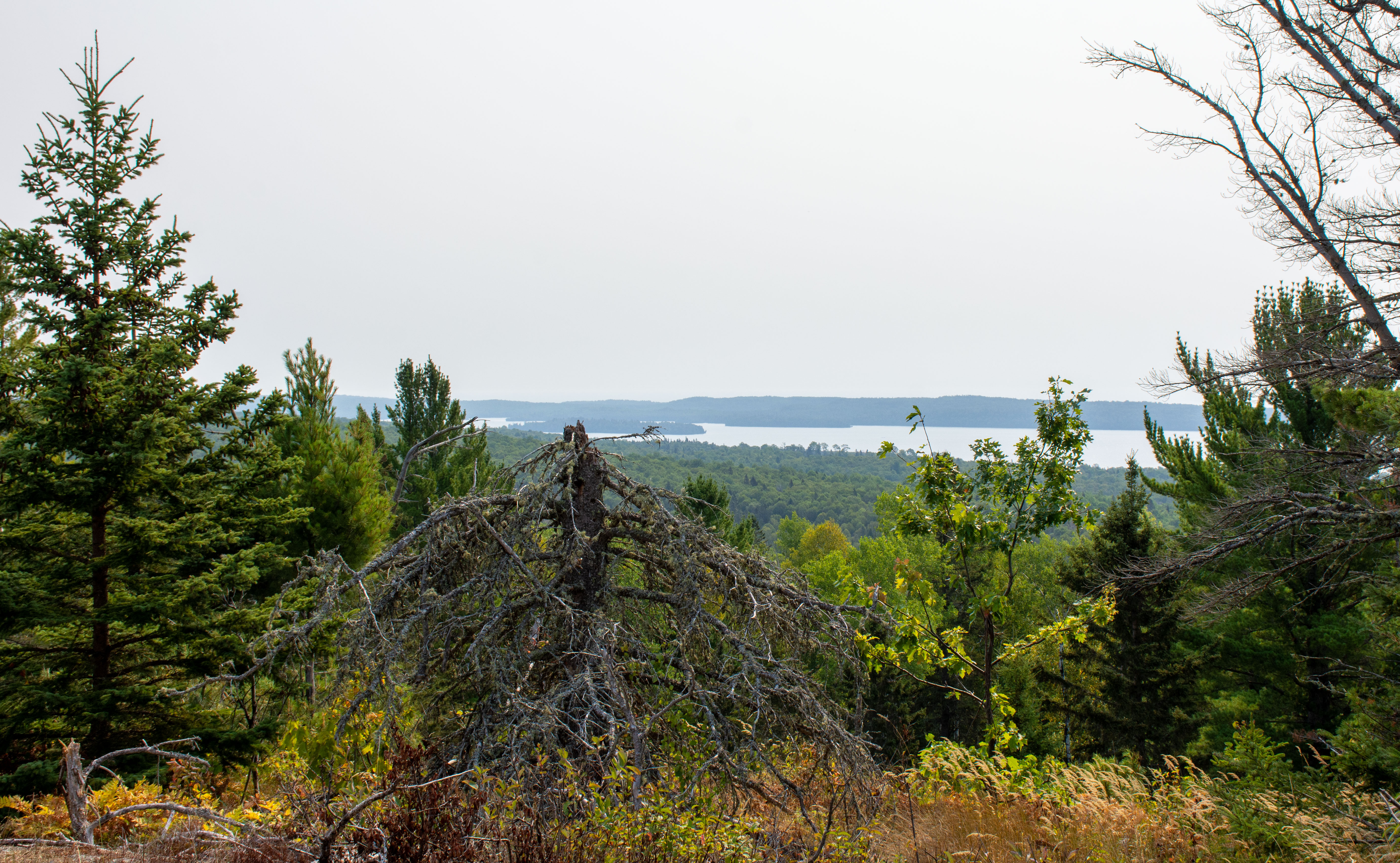 We scaled the north face of the Greenstone Ridge to reach the trail junction by around 9:30. Tough climb, but didn’t seem as bad as what we walked down heading toward Hatchet Lake on Day 4. Hellishly hot once again on the ridge today. 8 miles to Mt. Ojibway and we were quickly drenched in sweat yet again. This seemed like a much tougher stretch on the GR trail than our hikes between Island Mine and Hatchet, but we were feeling strong and skipped the first exit to Daisy Farm. We reached the Mt. Ojibway watch tower at the perfect time - great break for lunch in the shade of the tower (not much shade anywhere else) with incredible views of the East end of the island.