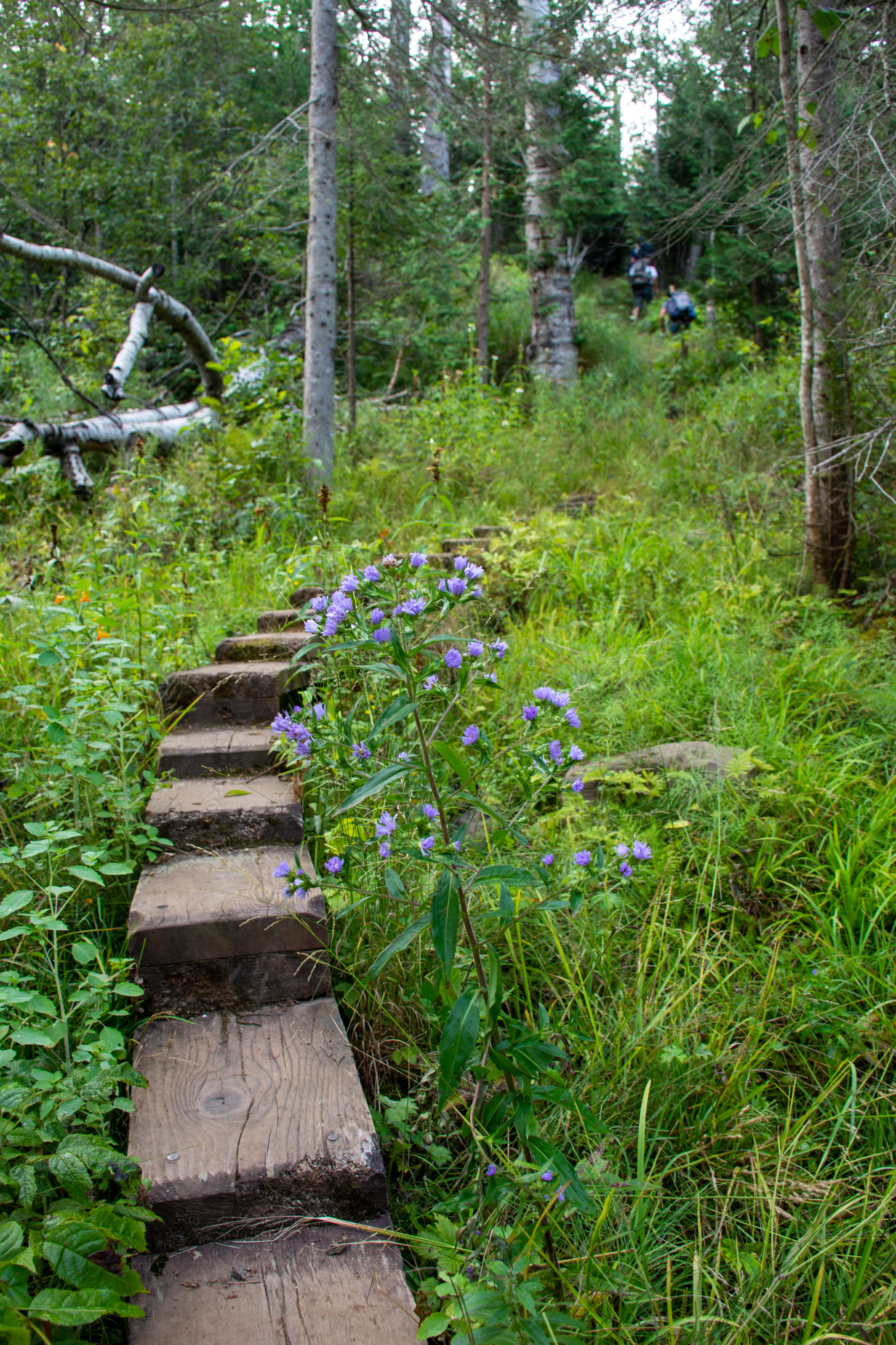 The trail heading SW from McCargoe Cove is another beautiful stretch of terrain. We made a hard left to head over the creek connecting Chickenbone Lake to the cove and headed up our first steep ascent of the day. We actually crossed a few boardwalks with water or mud below as we skirted the east end of Chickenbone Lake. I’m guessing this entire section would be a mucky mess in normal conditions, but we had no issues keeping our feet dry.