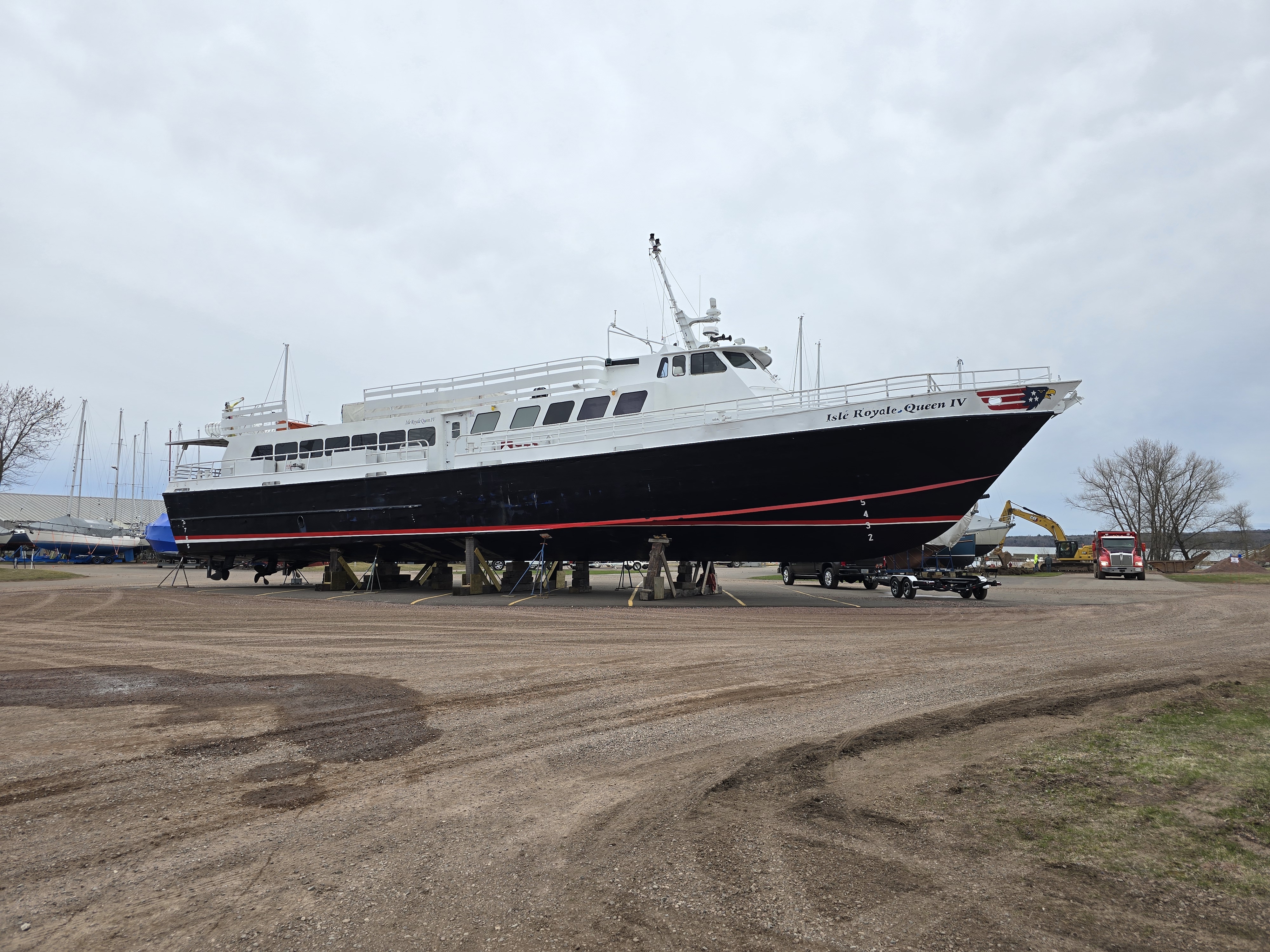 Spotted on the hard in Washburn, Wisconsin, where it wintered over.