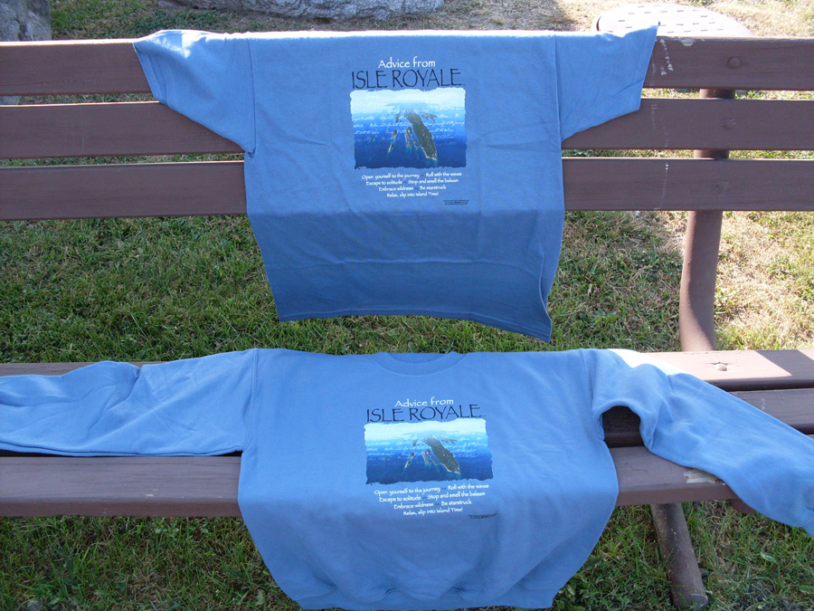 IRKPA now has Advice from Isle Royale magnets ($4.50) available at all Isle Royale visitor centers and http://www.irkpa.org. T-shirts ($16.95 S-XL, $18.95 2XL) and sweatshirts ($24.95 S-XL, $26.95 2XL) just arrived Thursday. The shirts are available from the Houghton or Windigo visitor centers or http://www.irkpa.org. We don't have enough room to sell them in the Rock Harbor visitor center--as those of you who have been there can appreciate!