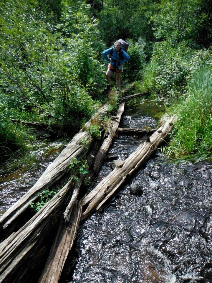 I remember this stream crossing very well. The first time we encounter it it was the end of July/early August 2014. The stream was flowing very fast. I certainly could not walk the log and going in the water was out of the question so I very painstakingly scooted along the log. Of course my daughter did not understand why I could not just balance on the log. It probably did not help it was raining and thundering in the distance but there was no way I was going to be able to balance on the log, backpack or no backpack.
