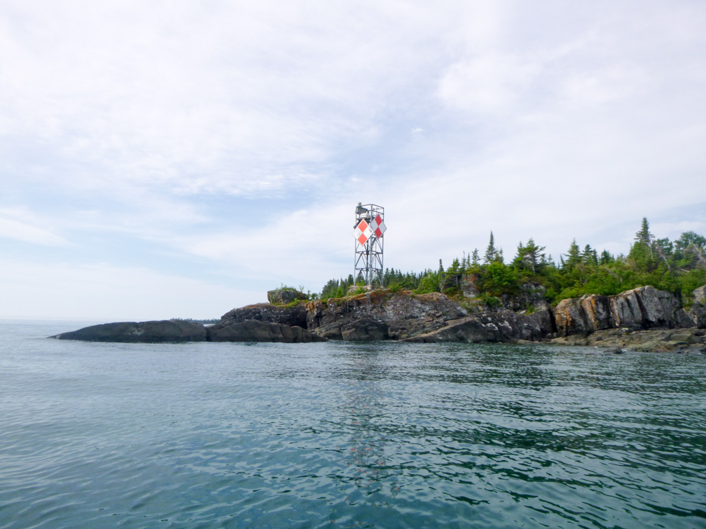 Sunday, 7/15: After watching the weather forecasts (and actual) for several days and talking about it for years, we figured the stars were aligned that if we were ever going to pull off a paddle of Blake Point with two men in and open canoe, today would be it. We got a decent start; perhaps a little bit slower since we had tents to pick up, but loaded up with a compass and radio, we paddled out of the Narrows feeling only a light breeze. As we started beyond the protection of Locke Point, we picked up the light rollers of Lake Superior, but the periodicity and height was nothing that was of concern in the canoe. We didn’t want to get ourselves too far out, for safety reasons, but at the same time when you start approaching the Palisades, much of the shoreline is rocky cliff (there are actually a few places you could potentially put in) which rebounds the wave back out. By the time we were at the Monarch shipwreck buoy, you started to pick up an alternate wave from the other side of the Isle… And paired with wave reflections, you’re really dealing with waves from four directions, which is a bit tough to read, and just becomes a slop. At some point you just need to keep paddling while wobbling, but we made it.