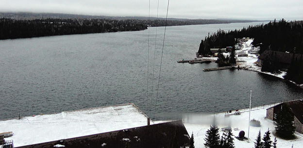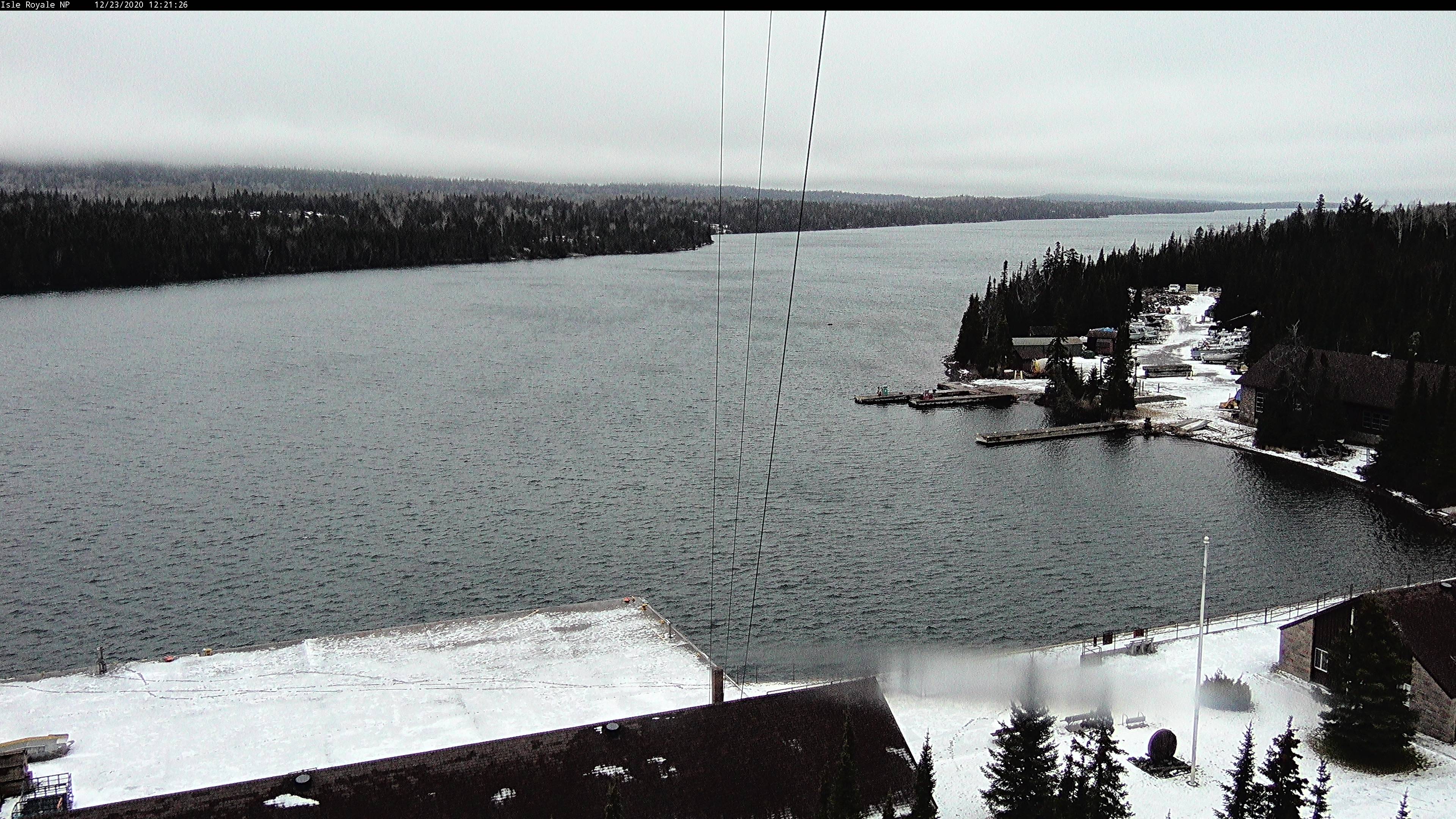 This being the winter season and the temperature being cold outside, I find myself looking forward to summer and checking the Isle Royale Mott Island Web camera often. When I checked it today, I saw some tracks in the light dusting of snow at Mott Island. I wonder what has been wandering around the quiet park headquarters. Any guesses?