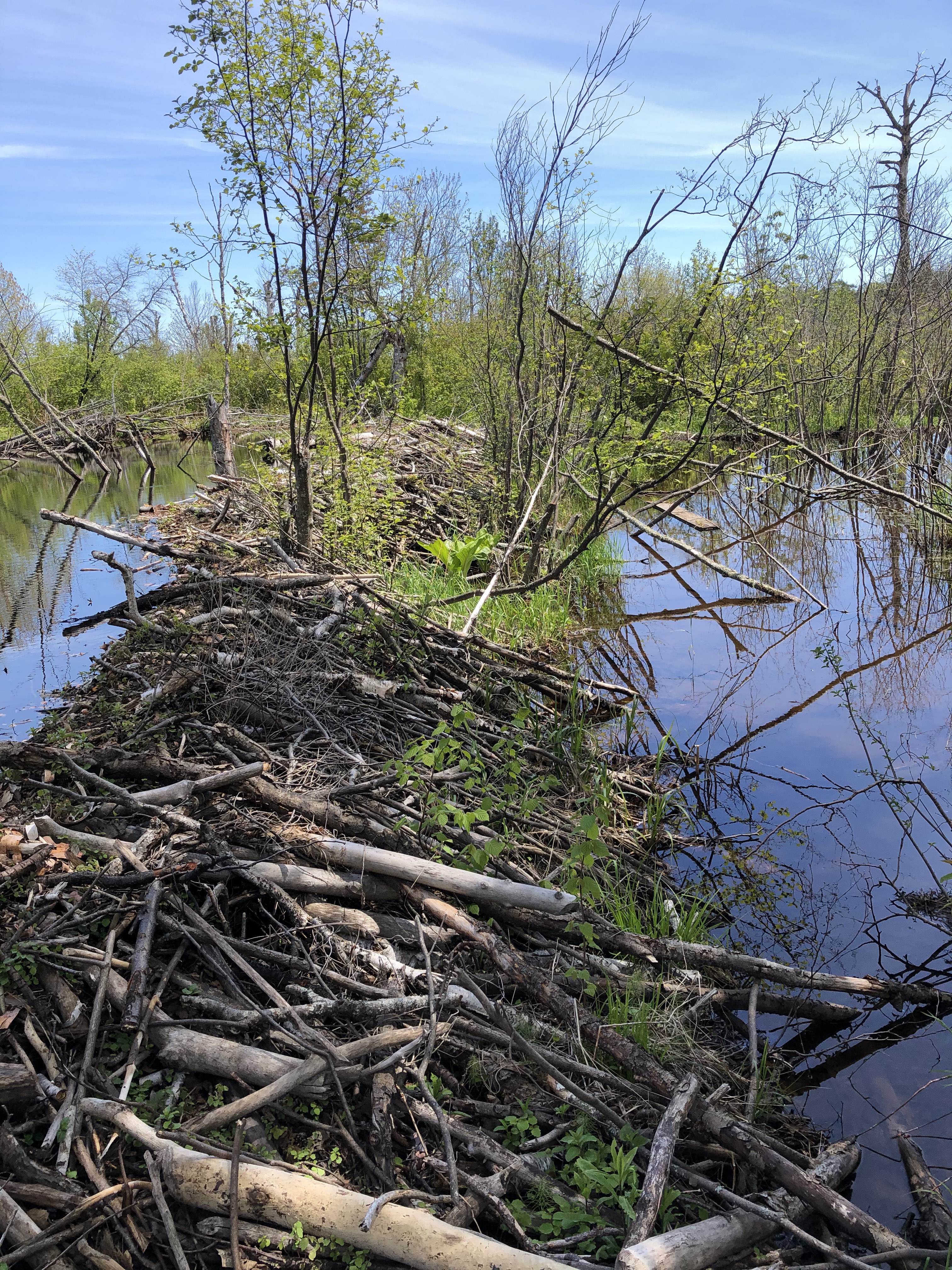 I headed out to the increasingly familiar accompaniment of rain and thunder. Beachwhacking around the beaver-ravaged bridge, I met a multigenerational expedition whose middle generation told me that the beaver had put on a show for the dockside audience after I had abandoned my vigil. I clearly need to eat more desserts!