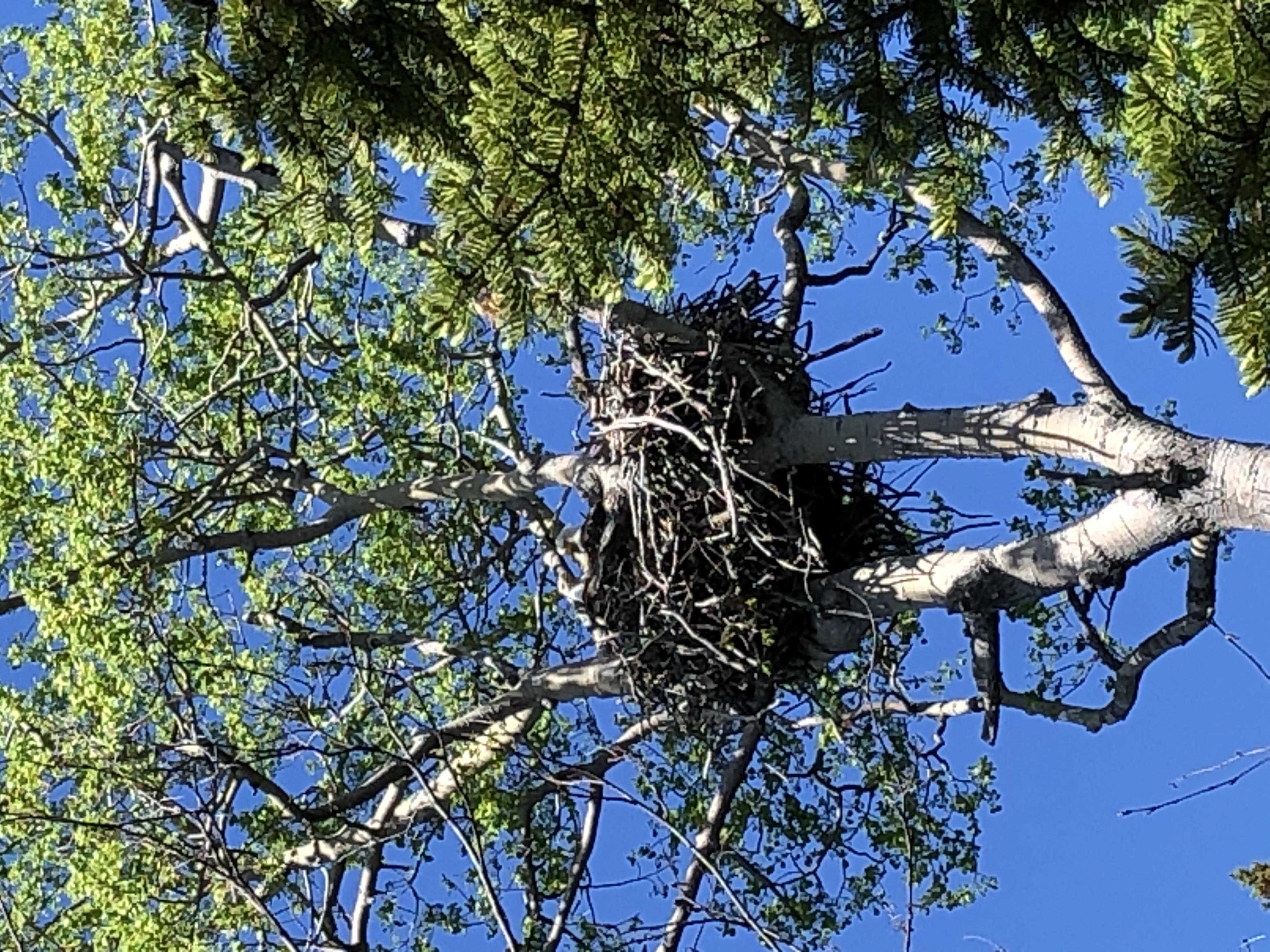 How I found the eagle’s nest: thanks to the fish enthusiast, I looked in the right general direction. Then I saw the eagle. The nest was a few branches down the commanding tree she perched atop.