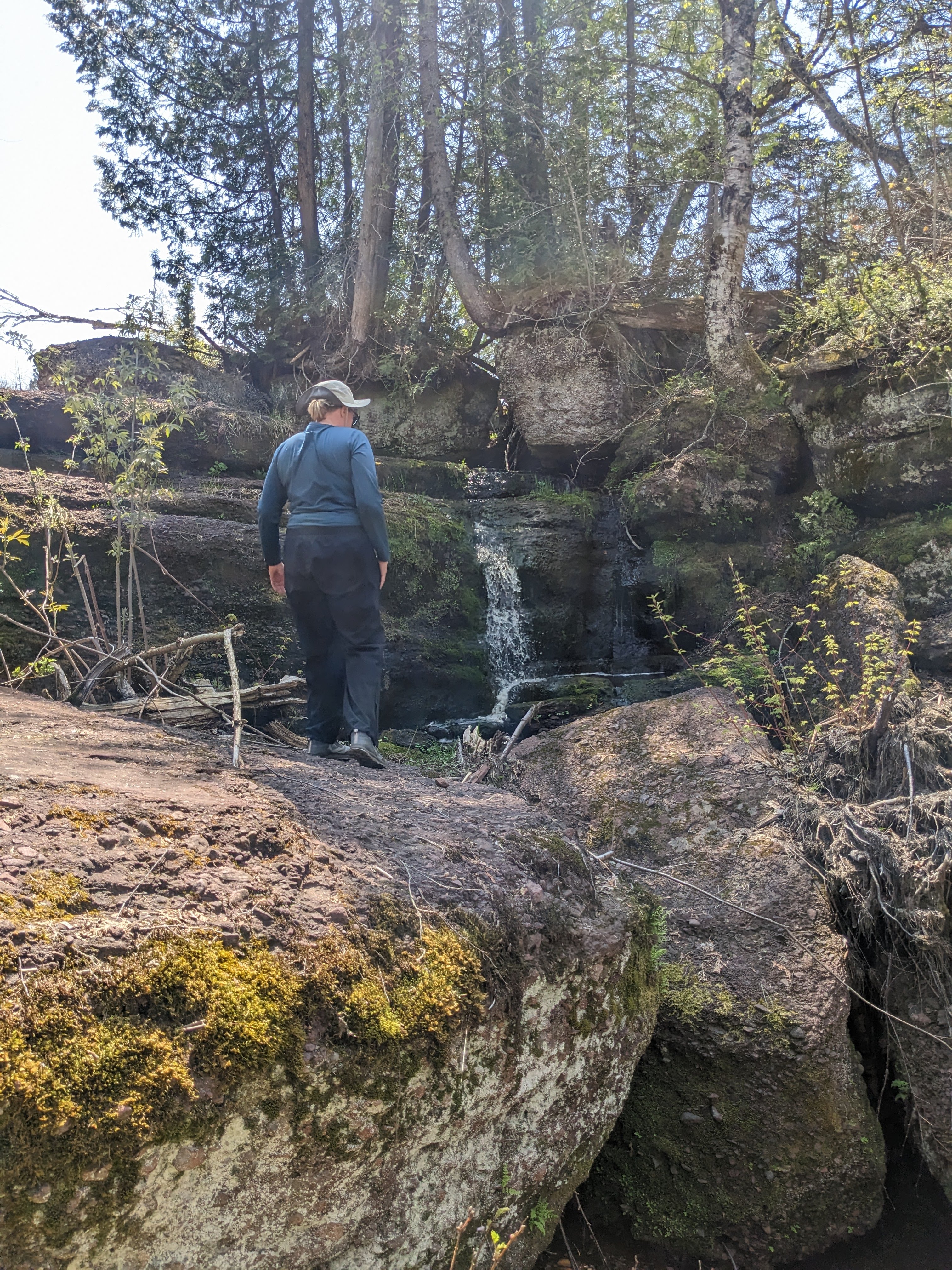 dcclark wrote:It was a magical little place, made even better because it was unexpected. I definitely recommend checking it out. Here's a photo with my wife and hiking partner for scale. The stream continues through the large boulders at the bottom and drains into a lowland area. The coordinates on the photo are N 47.8541972, W 89.1244917.