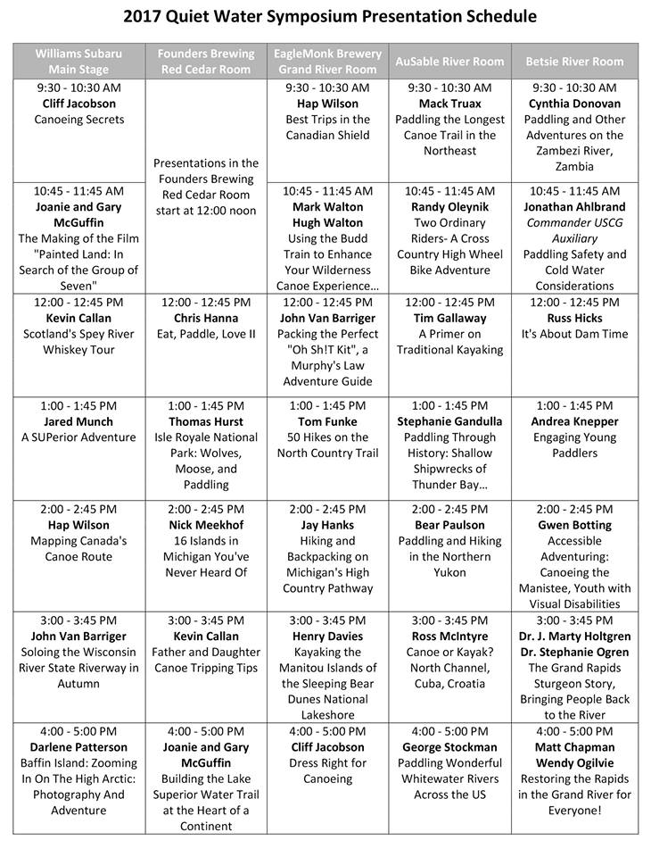 If anyone is interested, the 2017 Quiet Water Symposium will be taking place at the Michigan State University Pavilion this Saturday from 9 a.m. to 5:30 p.m. The address is: 4301 Farm Lane, East Lansing, MI