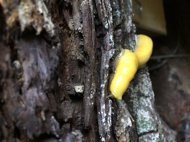 I saw a bull moose early on. He ran into the trees when he saw me. I also saw slugs lowering themselves from trees using slime. That is the stuff of nightmares.